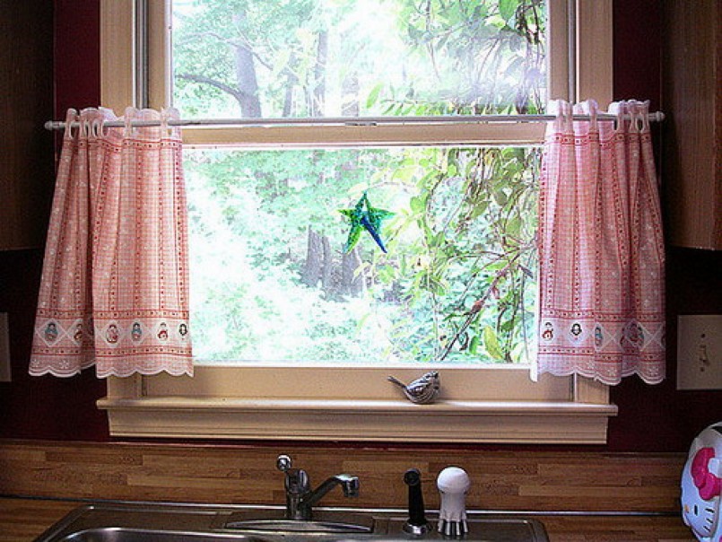 Шторы-кафе – визитная карточка уютных кухонь в стиле прованс, кантри и шебби-шик. Они представляют собой одинарную или парную занавеску, закрепленную на штанге посередине окна. Найти в магазине шторы нужной длины – задача практически неразрешимая, поэтому большинство хозяек предпочитает шить оконный текстиль самостоятельно.