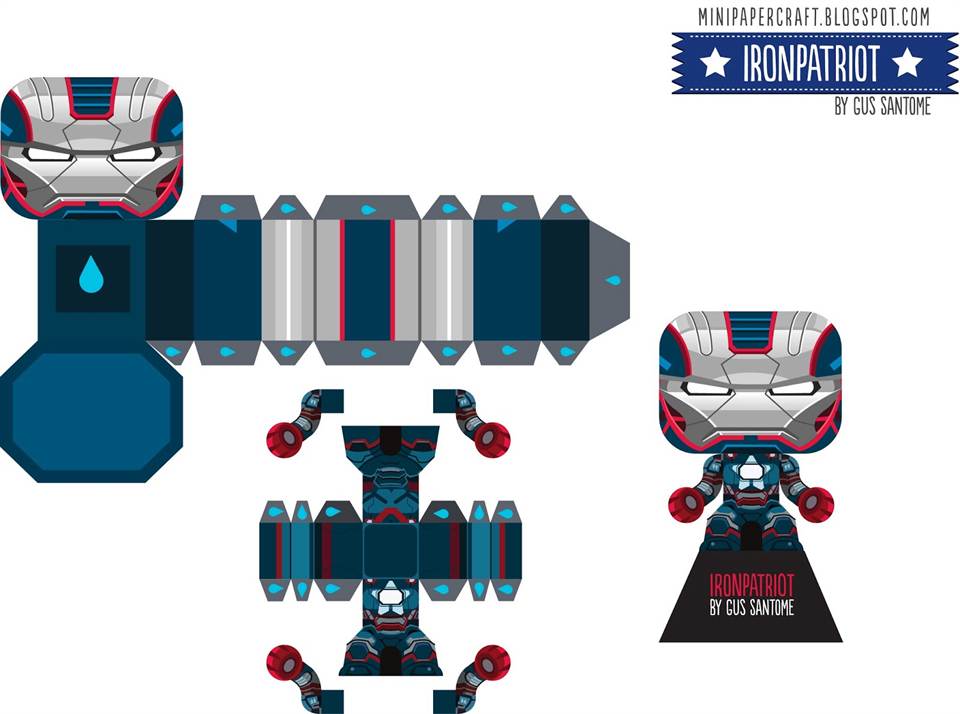 Дополнительно предлагаются схемы сборки железного человека в усложненном варианте. Принцип изготовления поделки аналогичен – готовую схему распечатывают, вырезают и сгибают имеющиеся зазоры. Их проклеивают в соответствии с инструкцией.