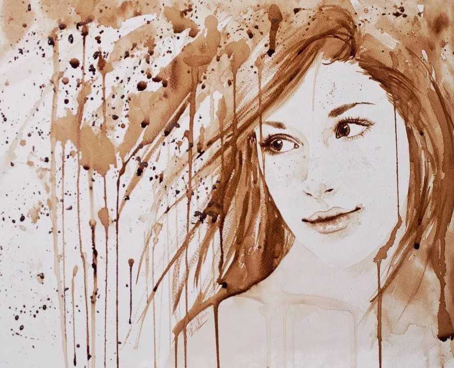 Как выдумаете чем писалась данная картинка? Нет, не угадали, кофе! Для исполнения нужно будет заварить крепкую смесь и рисовать ей, как обычными красками. Исполнение удивит всех зрителей.