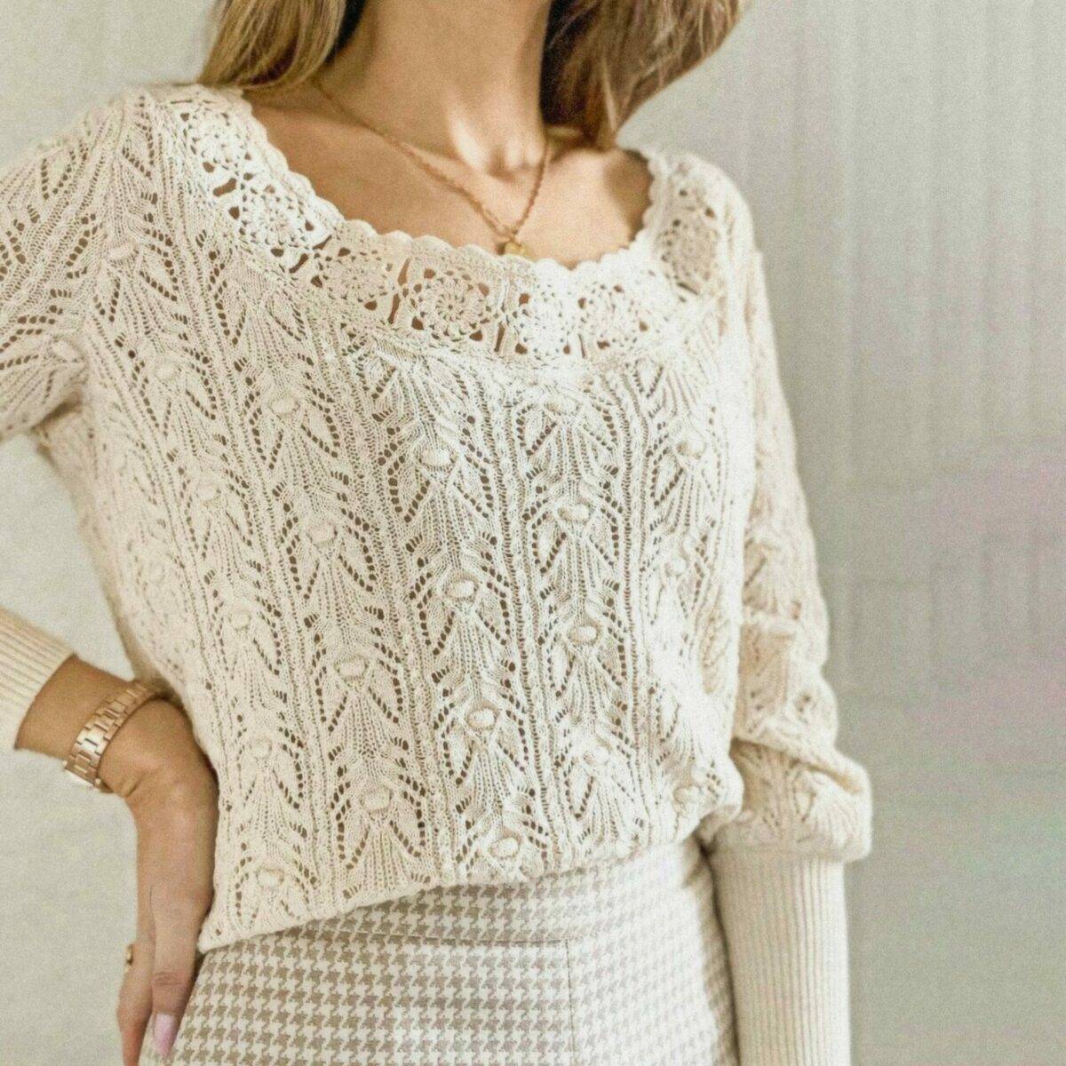 Если хочется чего-то более легкого и женственного, предлагаем ознакомиться с процессом создания ажурного изделия. Связать такой свитер спицами также довольно просто, для начинающих рекомендуем внимательно рассмотреть схемы и прочитать подробное описание.