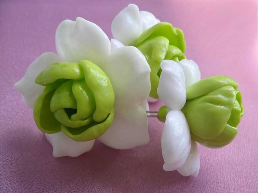 Для начинающих, прекрасным вариантом поделок из холодного фарфора, которые можно изготовить своими руками, являются простые по форме цветы (ландыши, гибискус, пион, розы), простейшие фигурки зверей и птиц, бижутерия с небольшим количеством декоративных элементов.