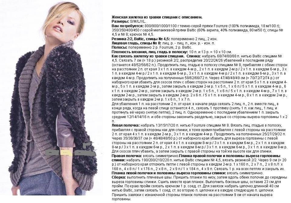 Ниже несколько схем с описанием вязания женского жилета с добавлением травки.