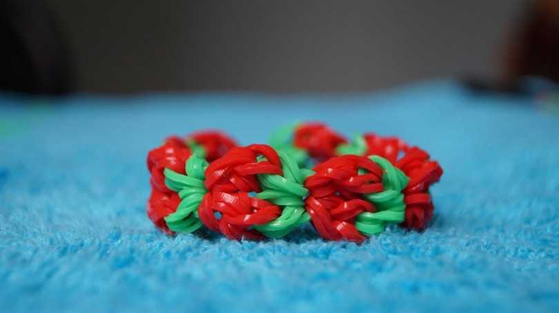 - По аналогии проплетаем еще девять резинок такого же цвета.